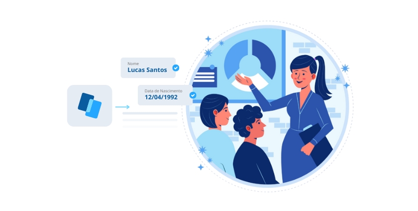 O sistema do DP pode, então, usar essa resposta para autopreencher os campos de cadastro. Isso não só agiliza o processo, mas garante 100% de acurácia dos dados, eliminando as falhas por divergência de nome ou data.